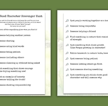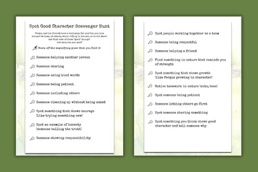 Turn character into a fun activity with this "feel good" scavenger hunt. Can your young one spot the good character around him/her?